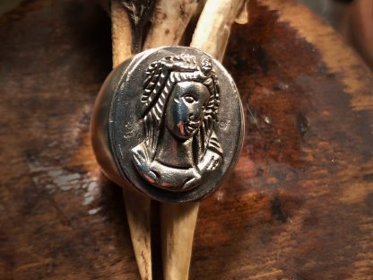 Sterling Silver Signet ring with cameo portrait of Graziella, the symbol of lovliness and grace. Dimensions- 3/4″ L X 1/2″ W Size 6.5